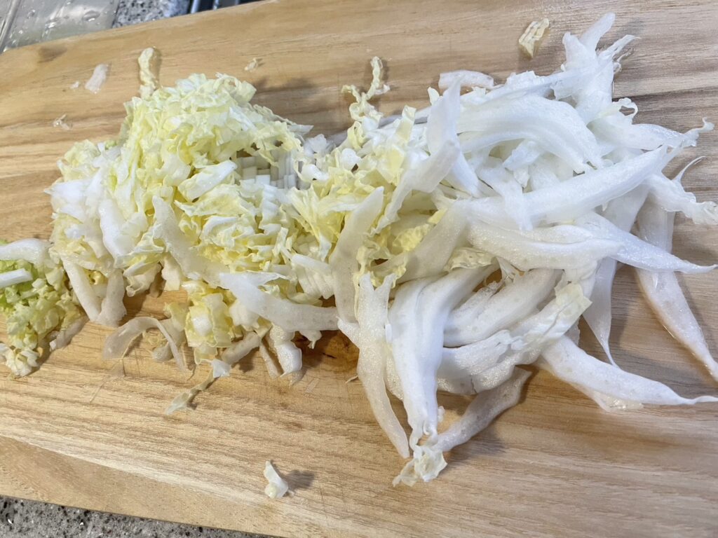 白菜の魅力は水分量の多さですが、その水分を旨味として逃さず一緒に食べたいです。