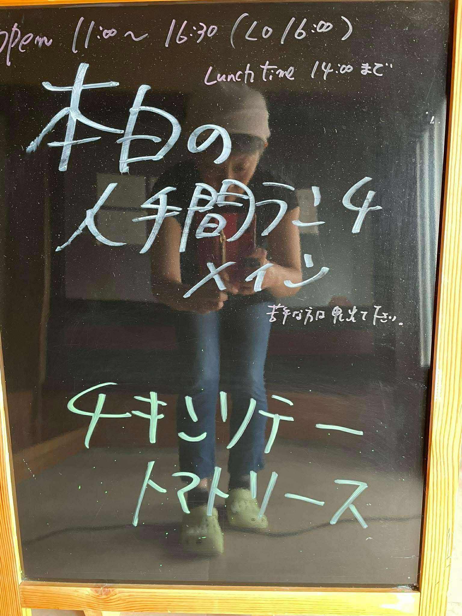 人手間ランチメインはチキンソテートマトソースです。 苦手な方は申し出て下さいませ。 皆様のご来店心よりお待ちしております。