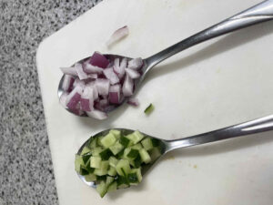 中に入れるものは、きゅうりや紫玉ねぎ、スパイス、ミントなどのハーブなどそのお店の個性があります。